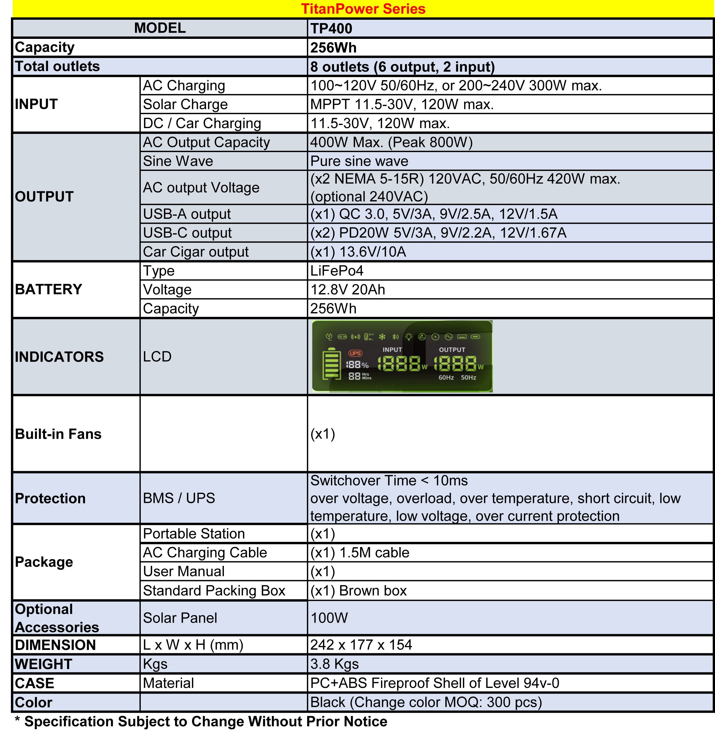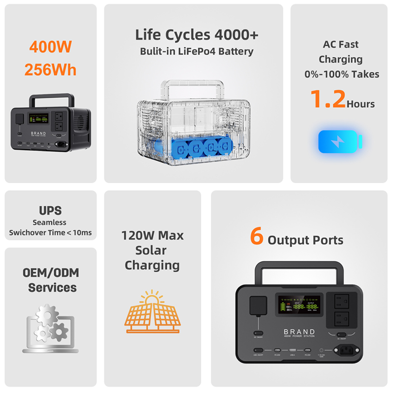 * Built-in LiFePo4 Battery, Life Cycles 4000+
