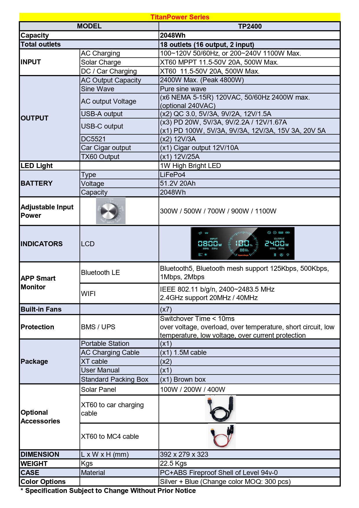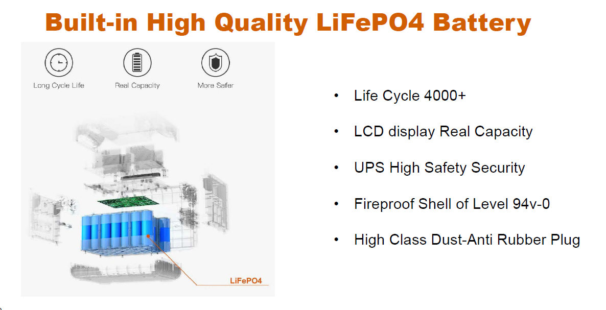 * Built-in LifePo4 Battery, Life Cycles 4000+