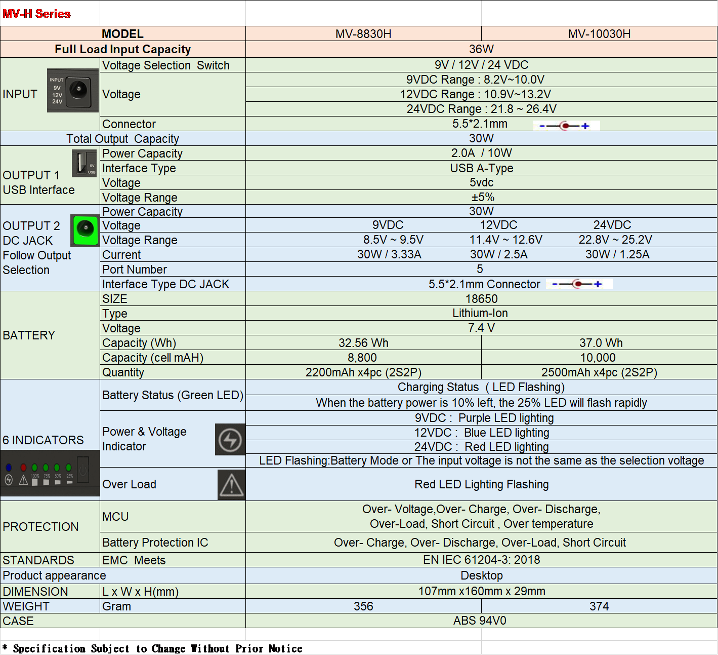 * Over Discharge, Overload, Short Circuit Protection, Over Charge, Surge Protection