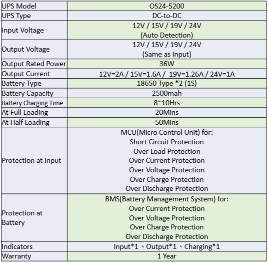 * Single Output Voltage: 12V or 15V or 19V or 24V
